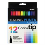 Plumones Aink APC-12 Punta Cónica Colores Surtidos C/12 Pzas
